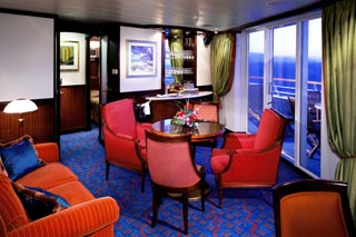 OWNER'S SUITES (SВ): Спальня с кроватью размера queen-size, ванная комната с джакузи и отдельным душем, гардероб, гостиная с обеденной зоной, балкон с джакузи. Услуги дворецкого и консьержа. Около 77,5 м2, максимальная вместимость – 5 человек.